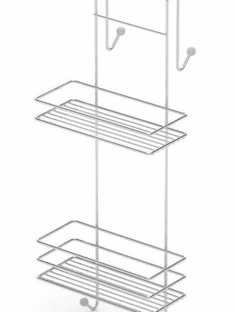 מדף רשת 2 קומות מדפים עם 4 ווים לתליה על מקלחון |
