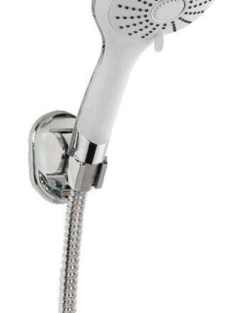 סט מזלף מקלח יד + צינור ומתלה למקלחת, דגם NARDIS נרדיס צבע כרום בשילוב לבן