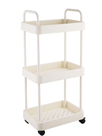 עגלת אחסון שלוש קומות עם גלגלים לבן מדף נמוך