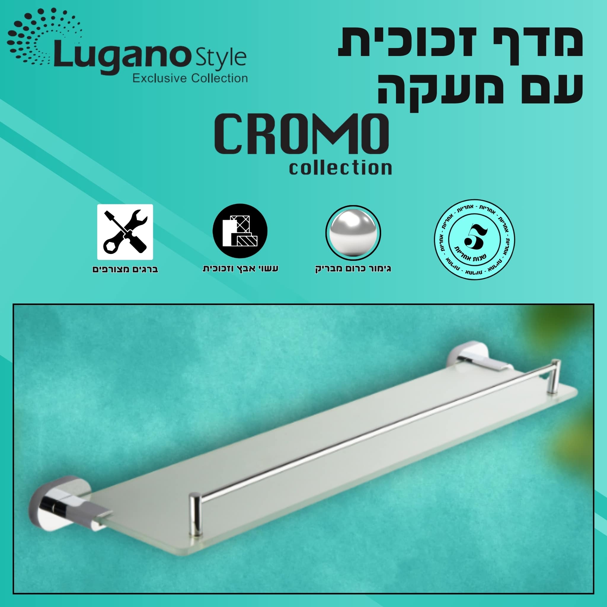 מדף זכוכית עם מעקה – סדרת CROMO