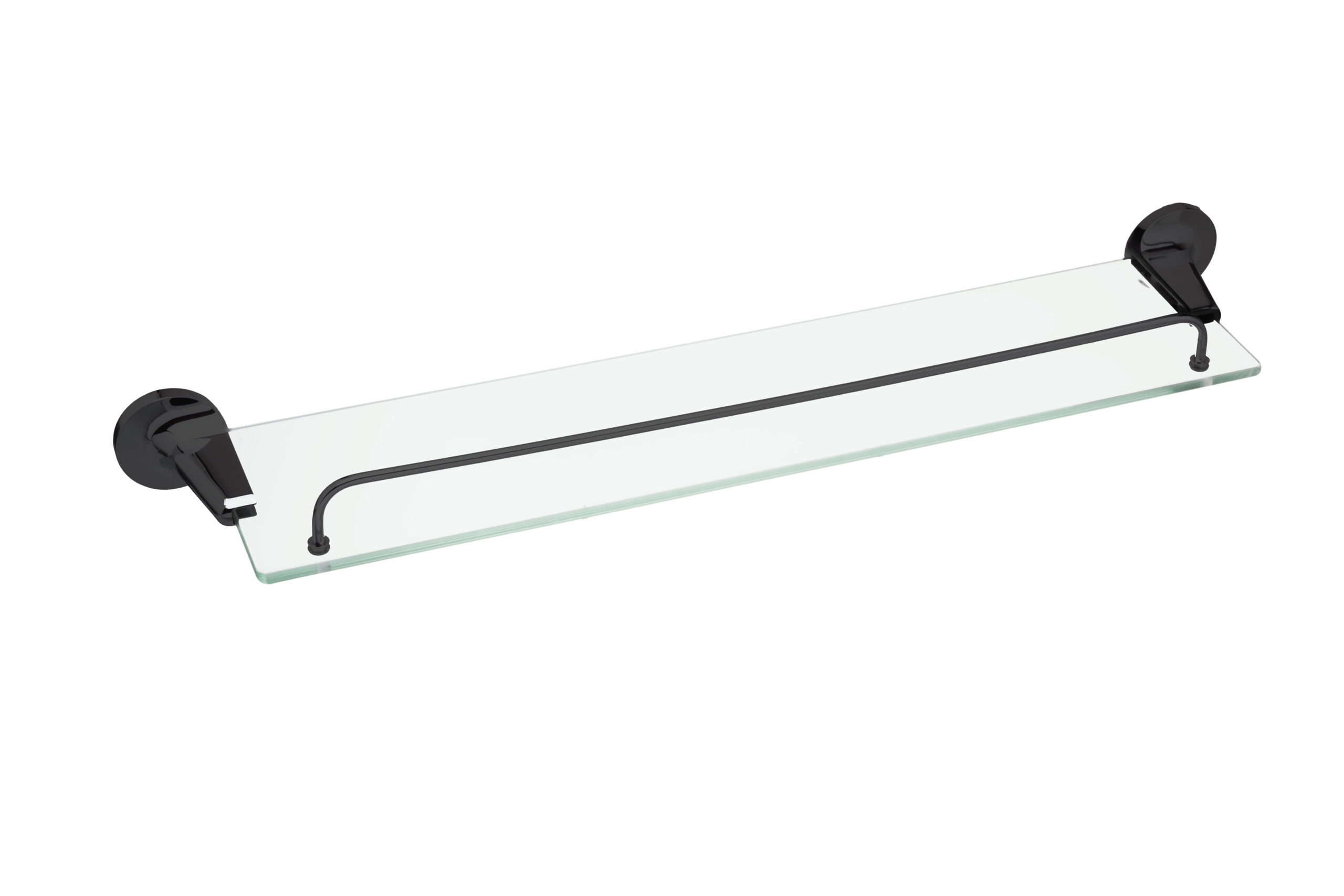 מדף זכוכית + מעקה למקלחת – צבע שחור