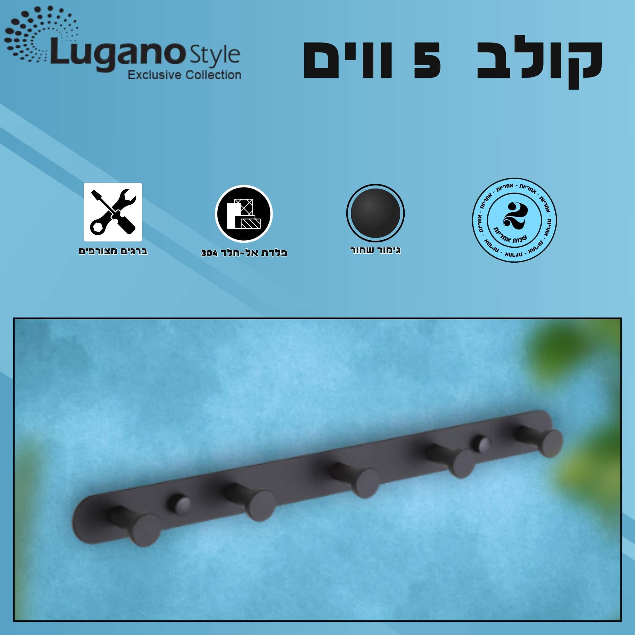 קולב 5 ווים – גימור שחור.
