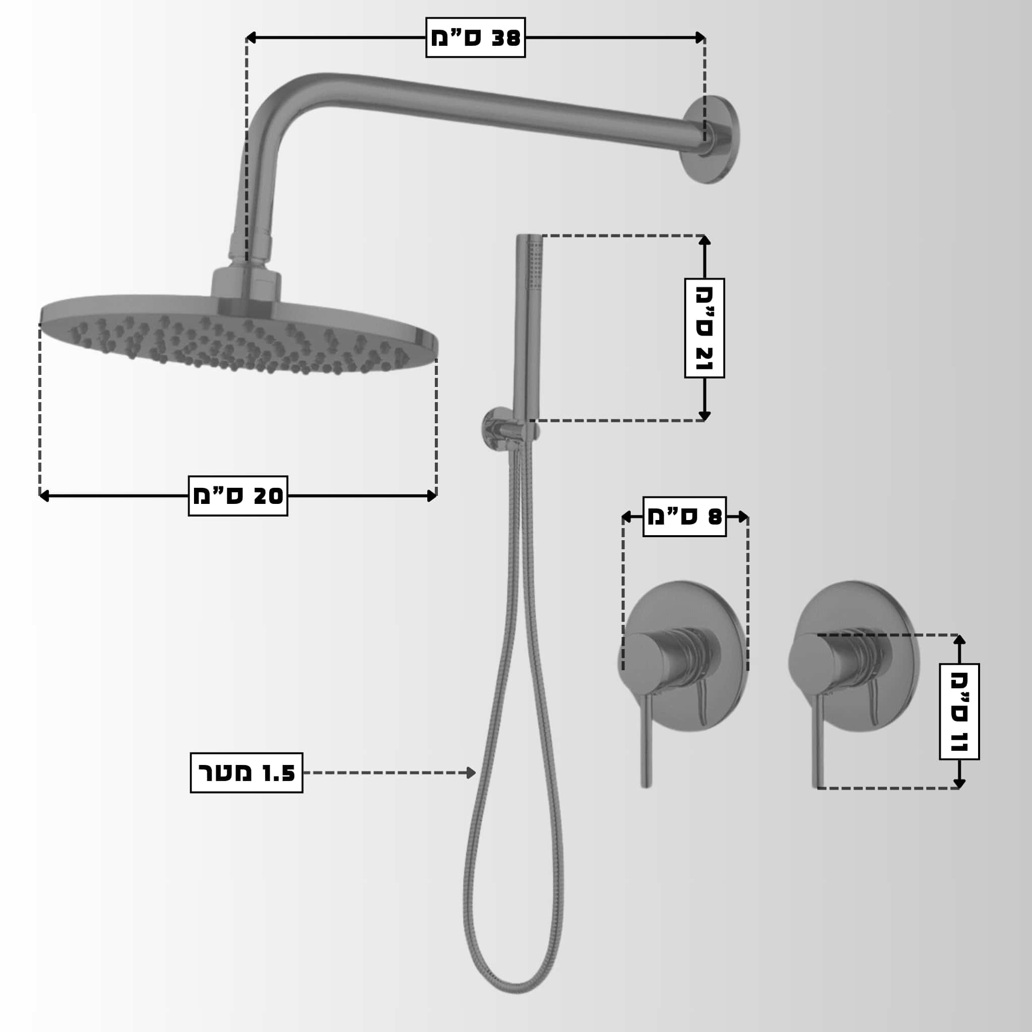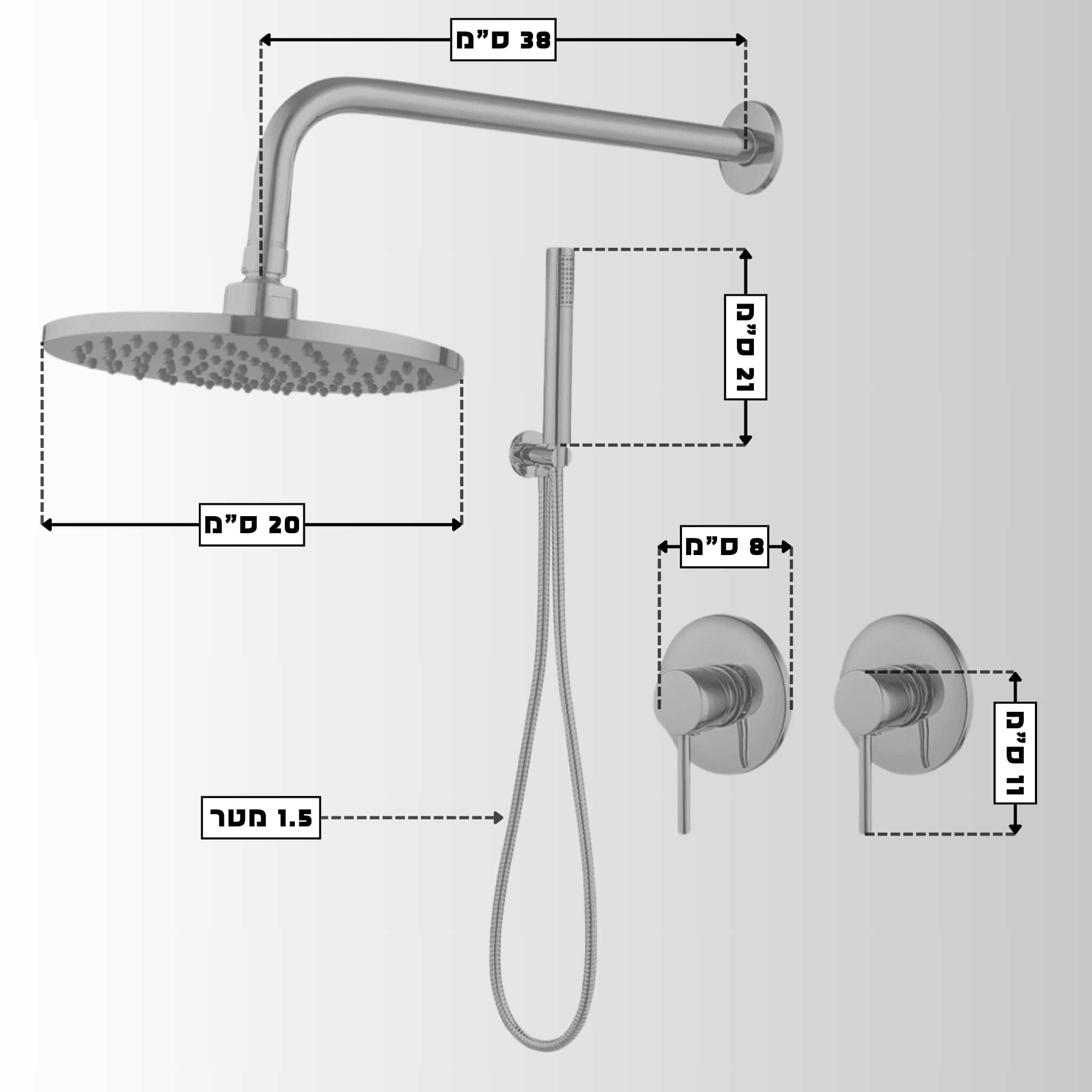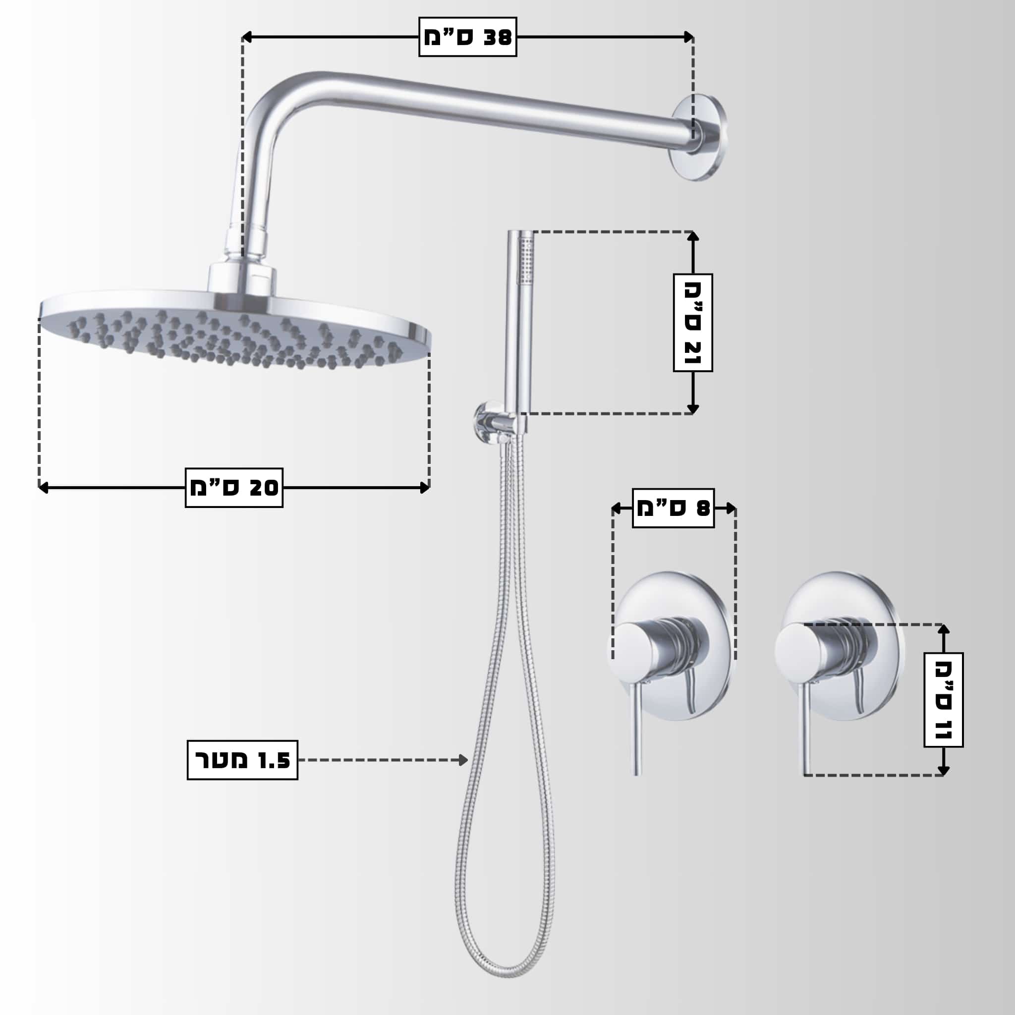 מערכת מלאה שכוללת כל מה שצריך למקלחת עכשווית.