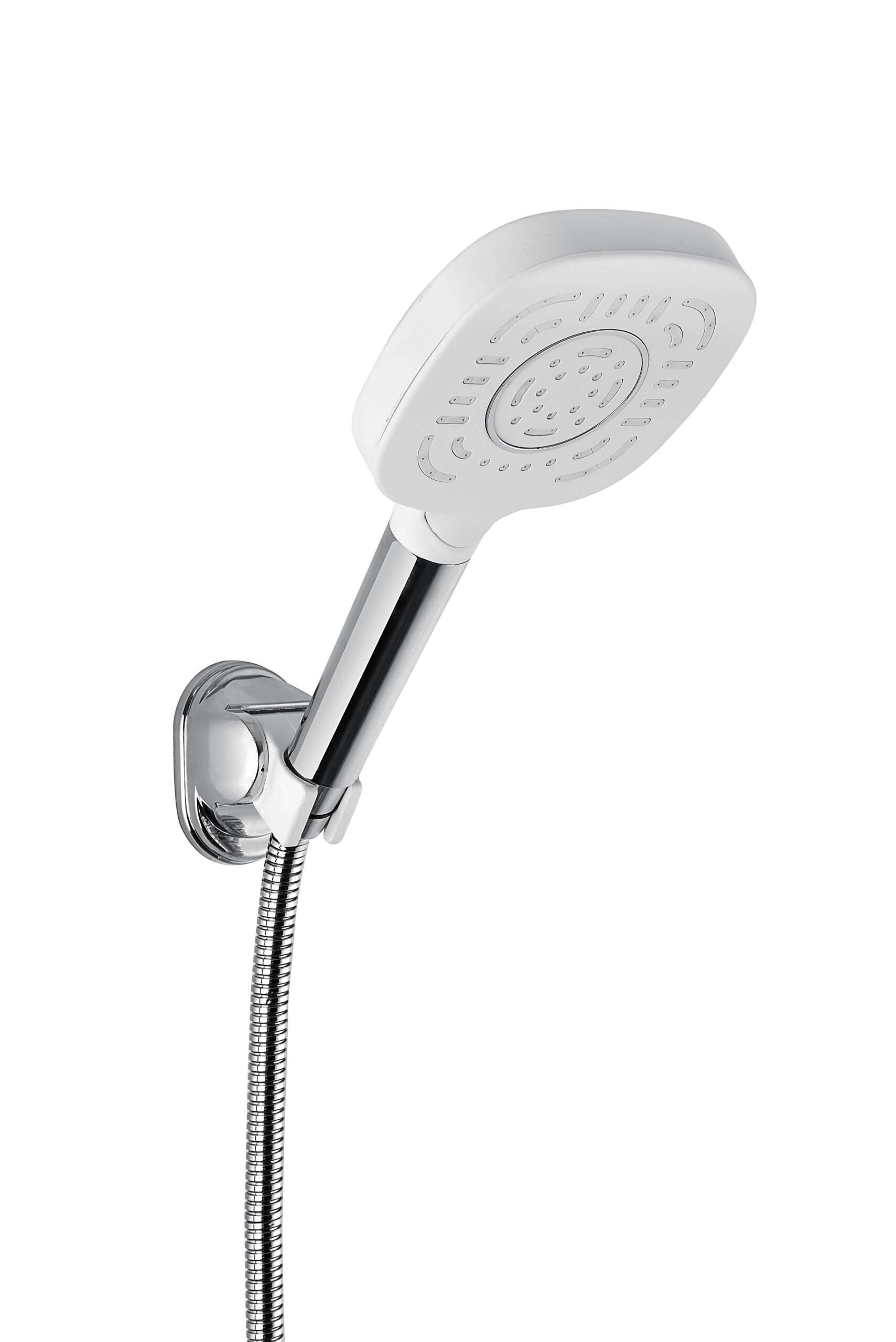 סט מזלף מקלח יד + צינור ומתלה למקלחת, דורה DORA צבע לבן בשילוב כרום