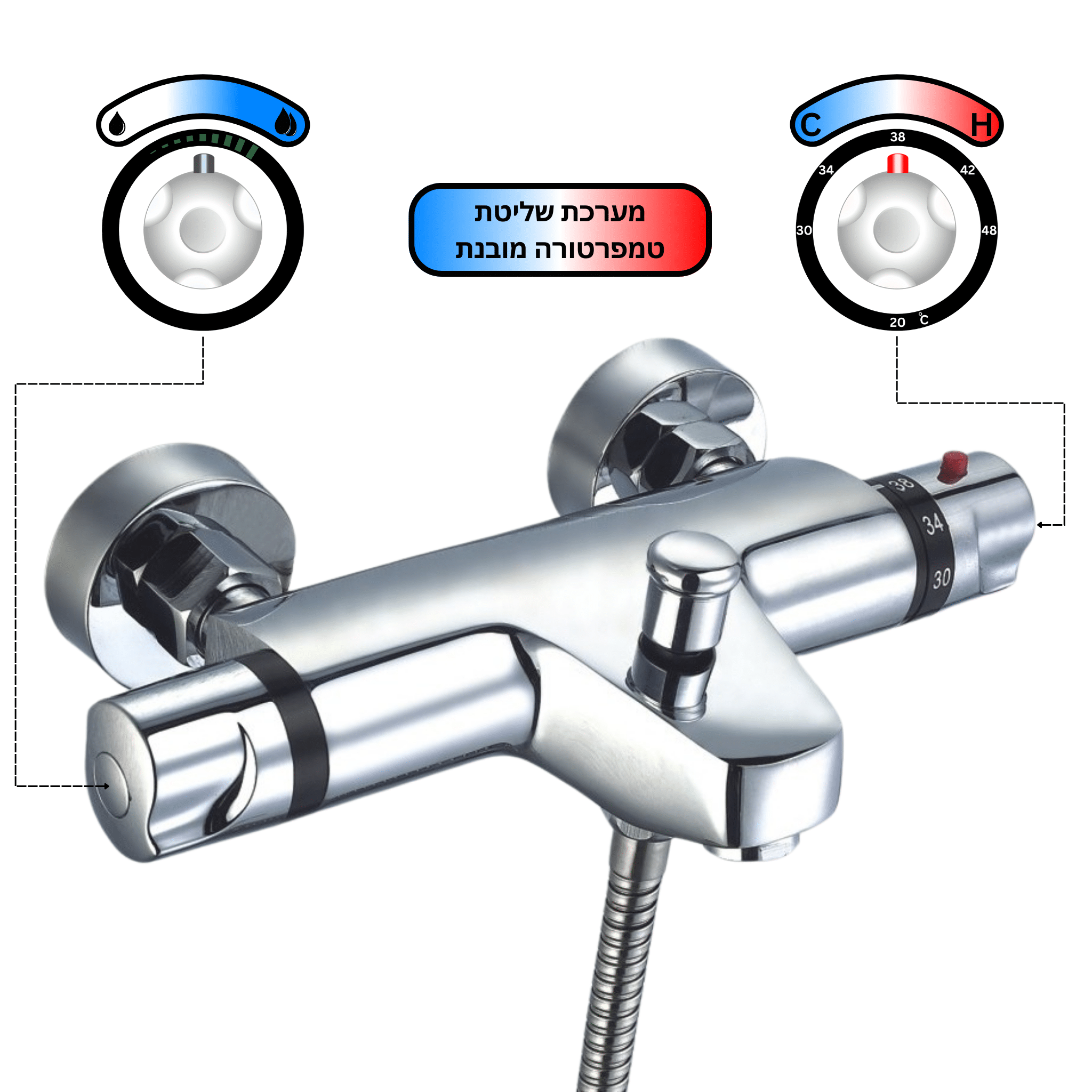 סוללה בעלת מנגנון המבודד חום וכך מונע כוויות, מנגנון השולט בחום המים (לחצן בטיחות), מנגנון המאפשר שליטה בעוצמת זרימת המים וכך חוסך במים.
