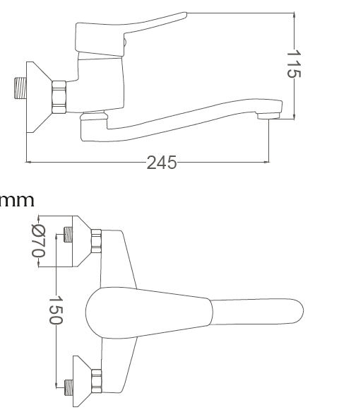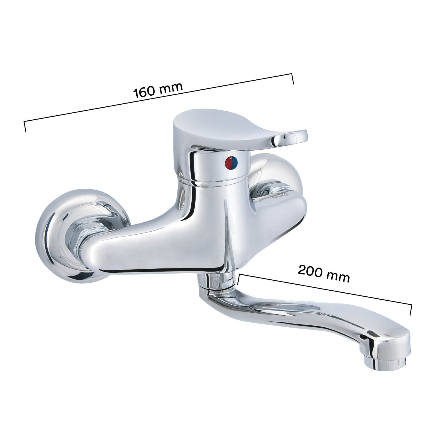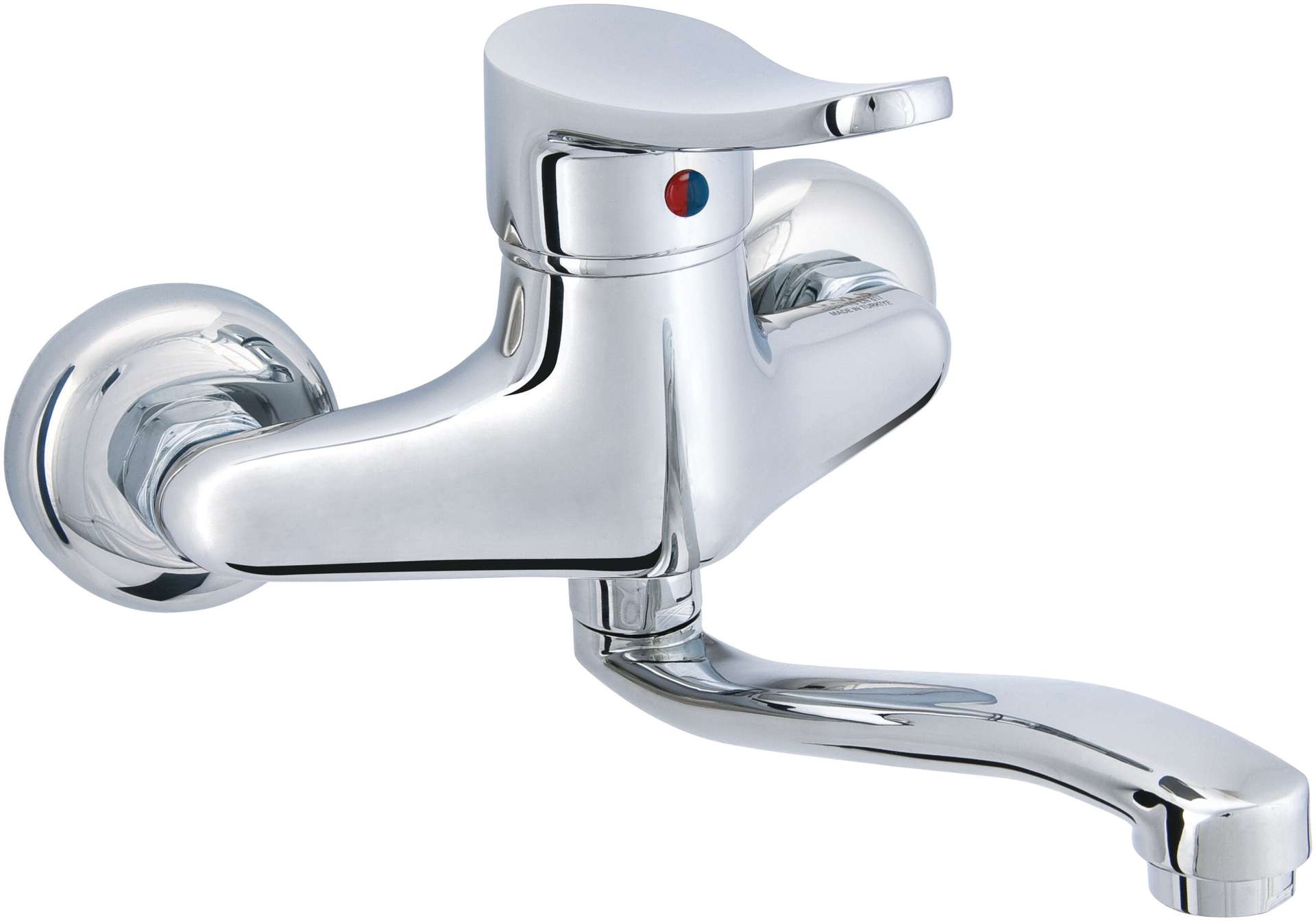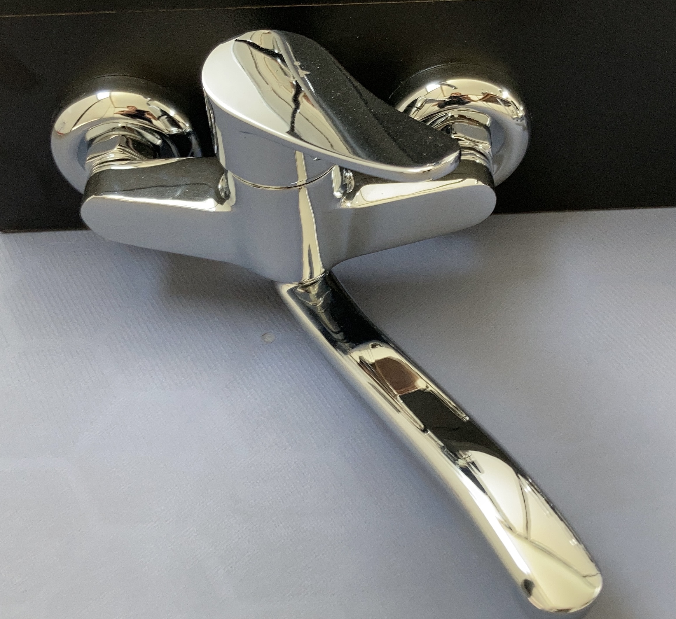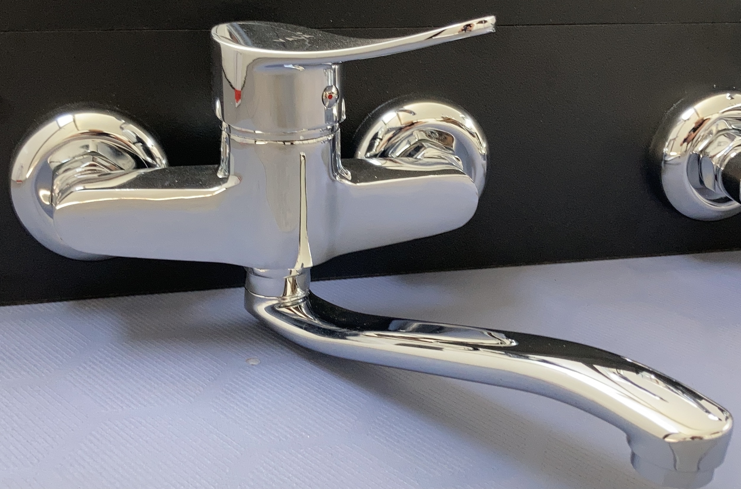 סוללת ברז קיר איכותית במיוחד עם מראה אלגנטי ופיית הזזה ארוכה למרחב נוח בעת השימוש.
