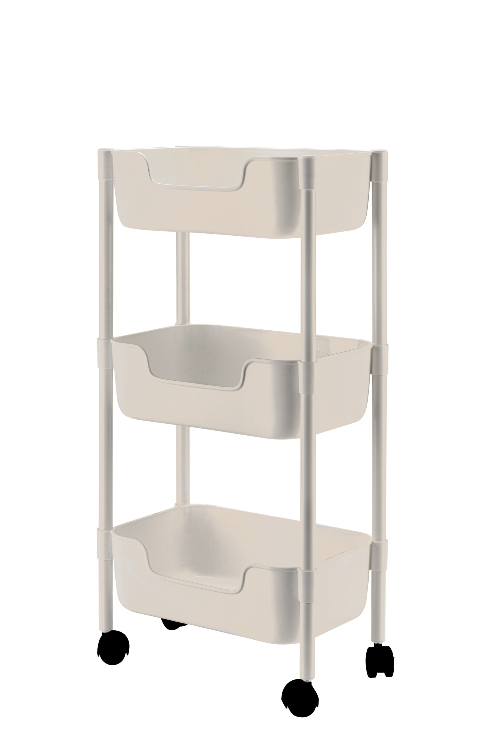 עגלת אחסון שלוש קומות בצבע לבן עם גלגלים