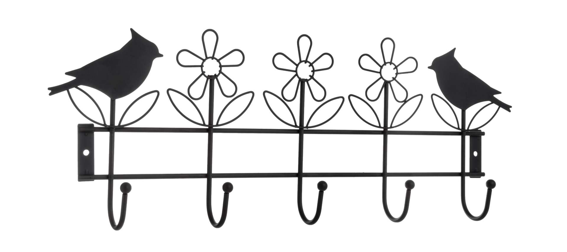 קולב מתכת ציפורים בשחור, 5 ווים, אורך 43 ס"מ, מתכת צבועה בתנור