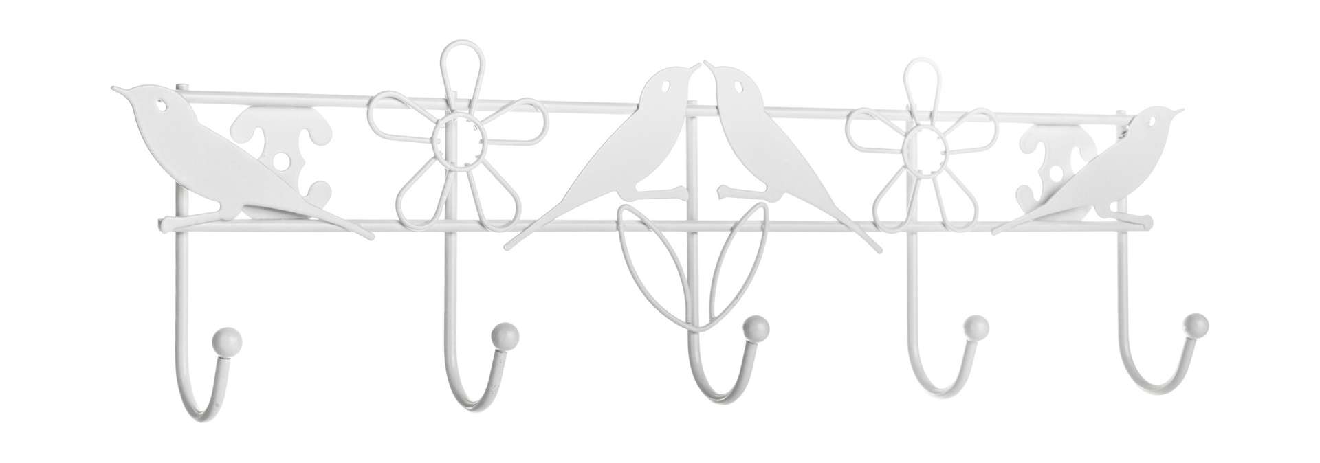 קולב מתכת ציפורי שיר, לבן, 5 ווים