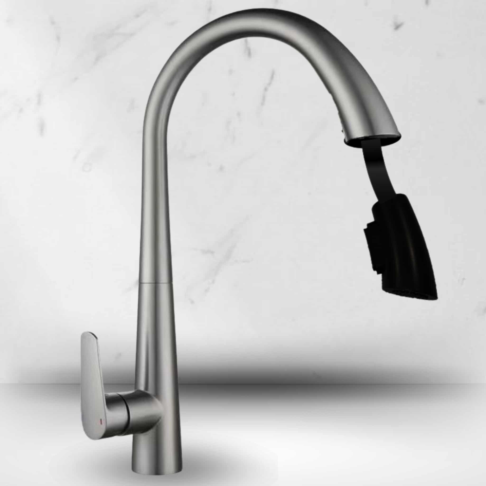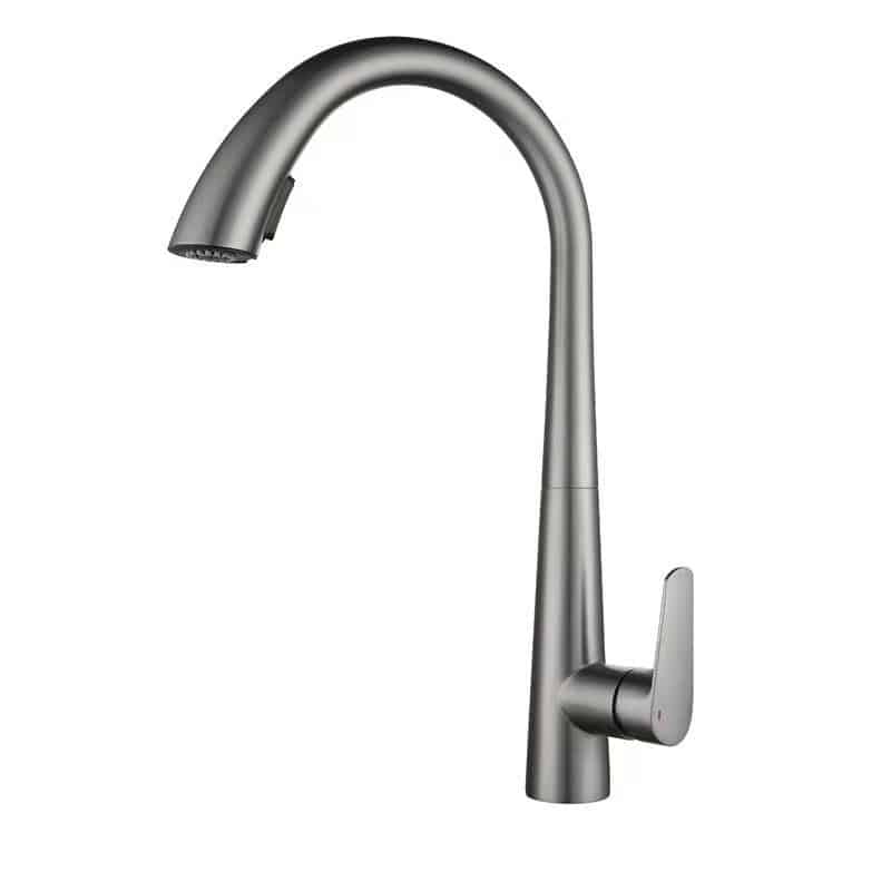ברז נשלף ניצב לכיור מטבח פיה קשתית גבוהה גימור אפור-גרפיט.