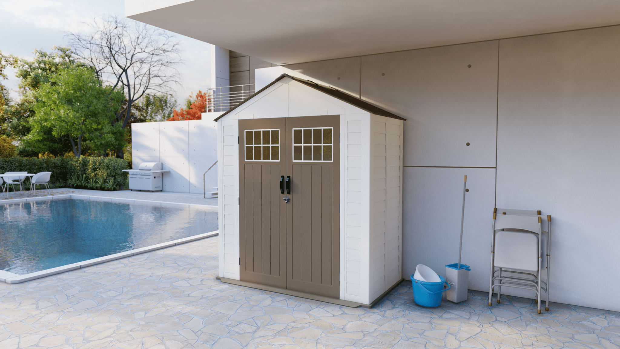 המחסן חייב להיות מותקן על משטח ישר – ניתן להניח אותו על בטון, ריצוף או דשא סינטטי