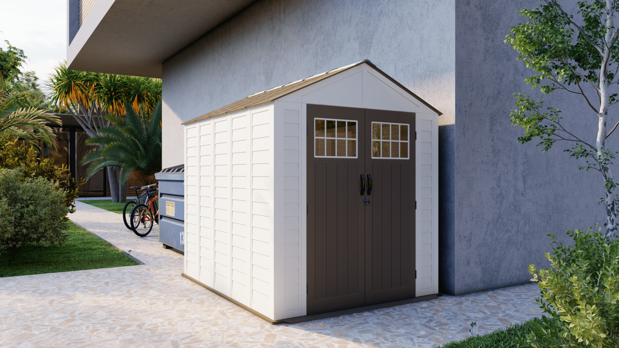 המחסן חייב להיות מותקן על משטח ישר – ניתן להניח אותו על בטון, ריצוף או דשא סינטטי