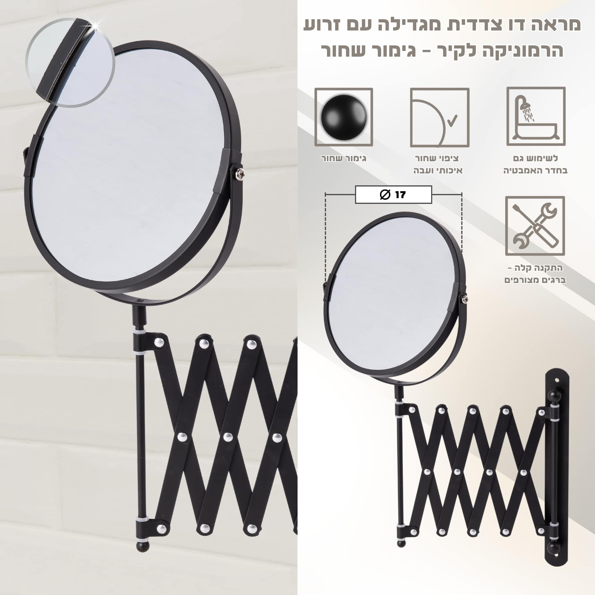 מראה הרמוניקה – 17 ס"מ – צבע שחור.