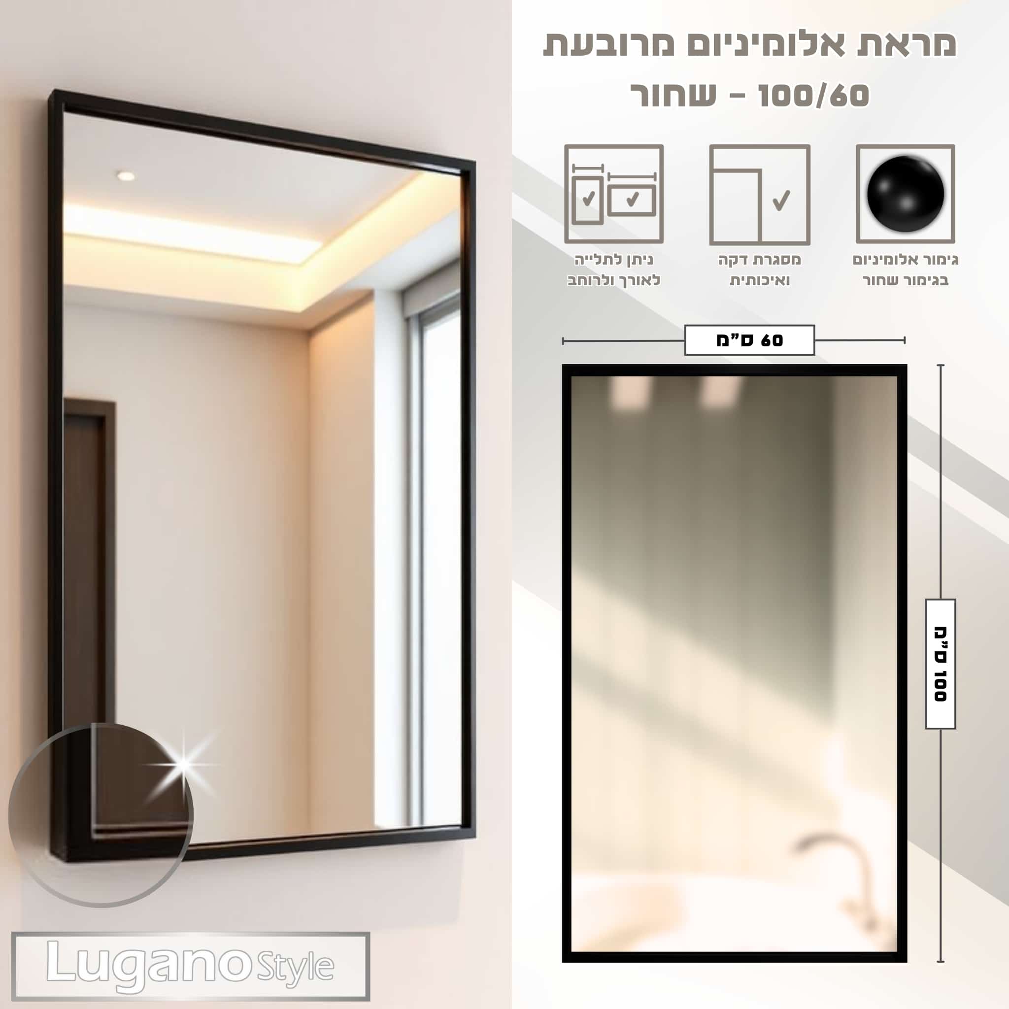 מראת אלומיניום 60/100 שחור.