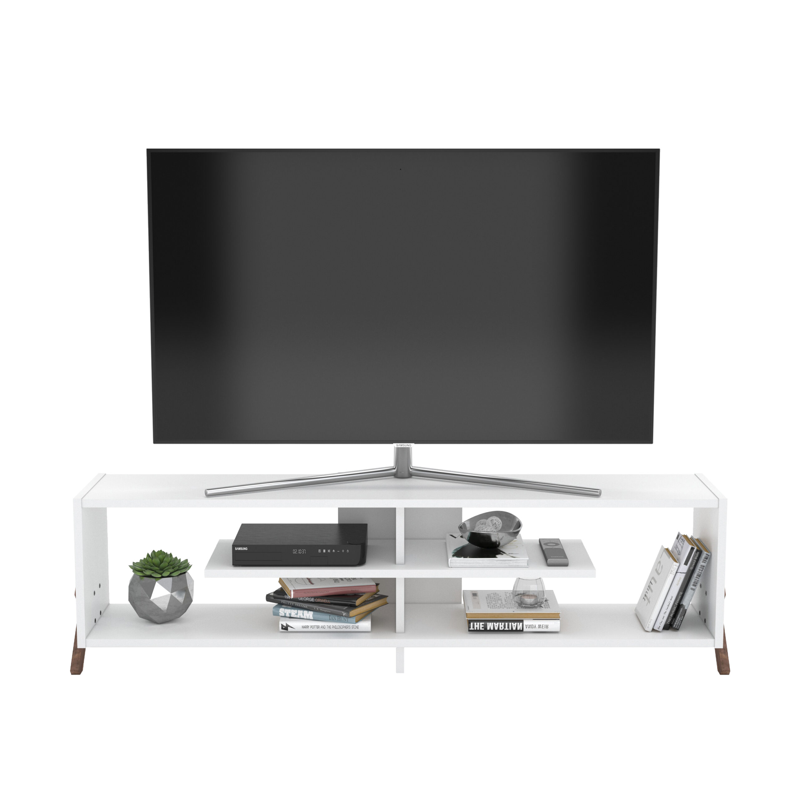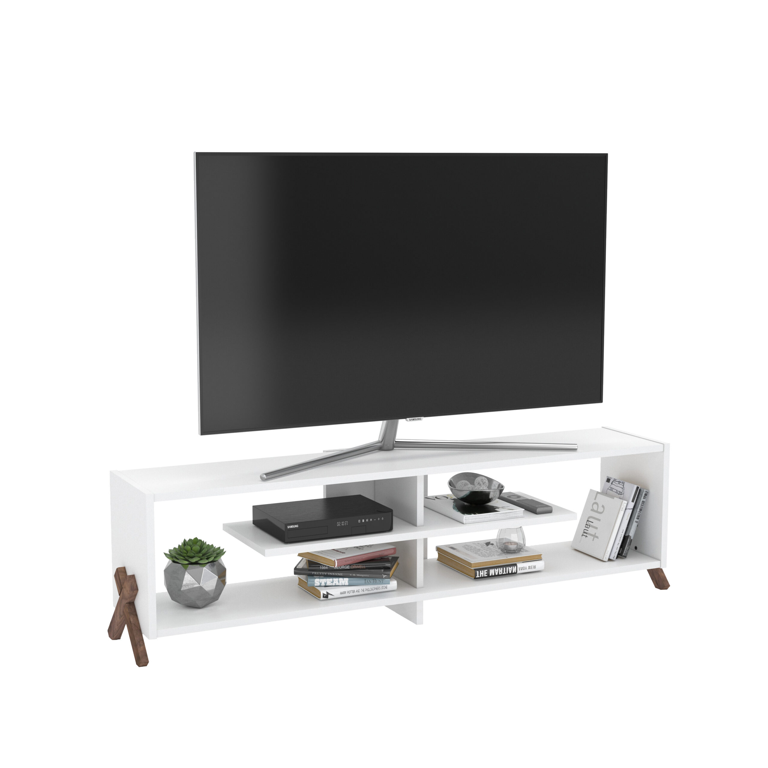 מזנון מעוצב עם רגלי X גוון אגוז בשילוב לבן