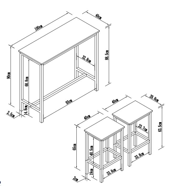 סט שולחן בר עם 2 כסאות.