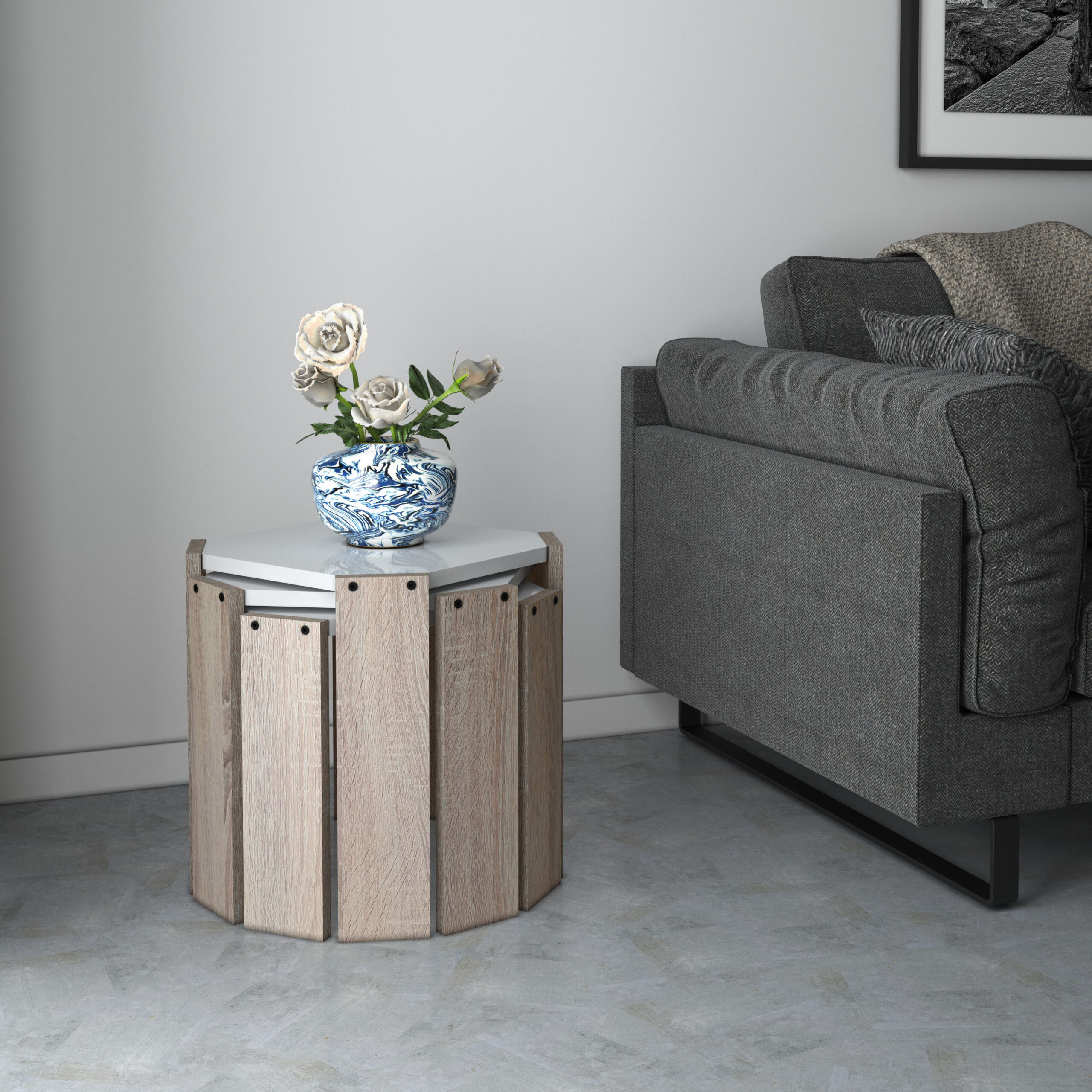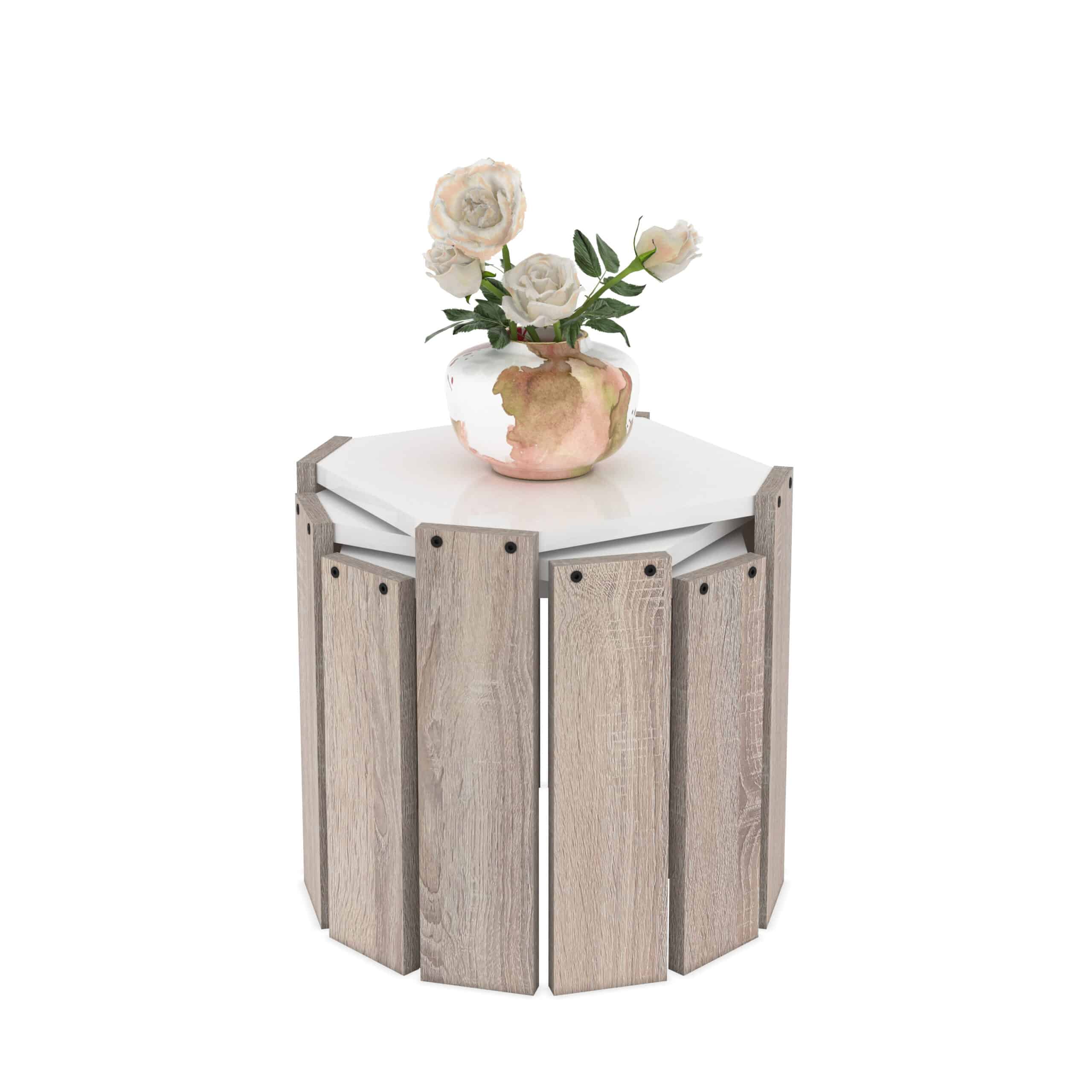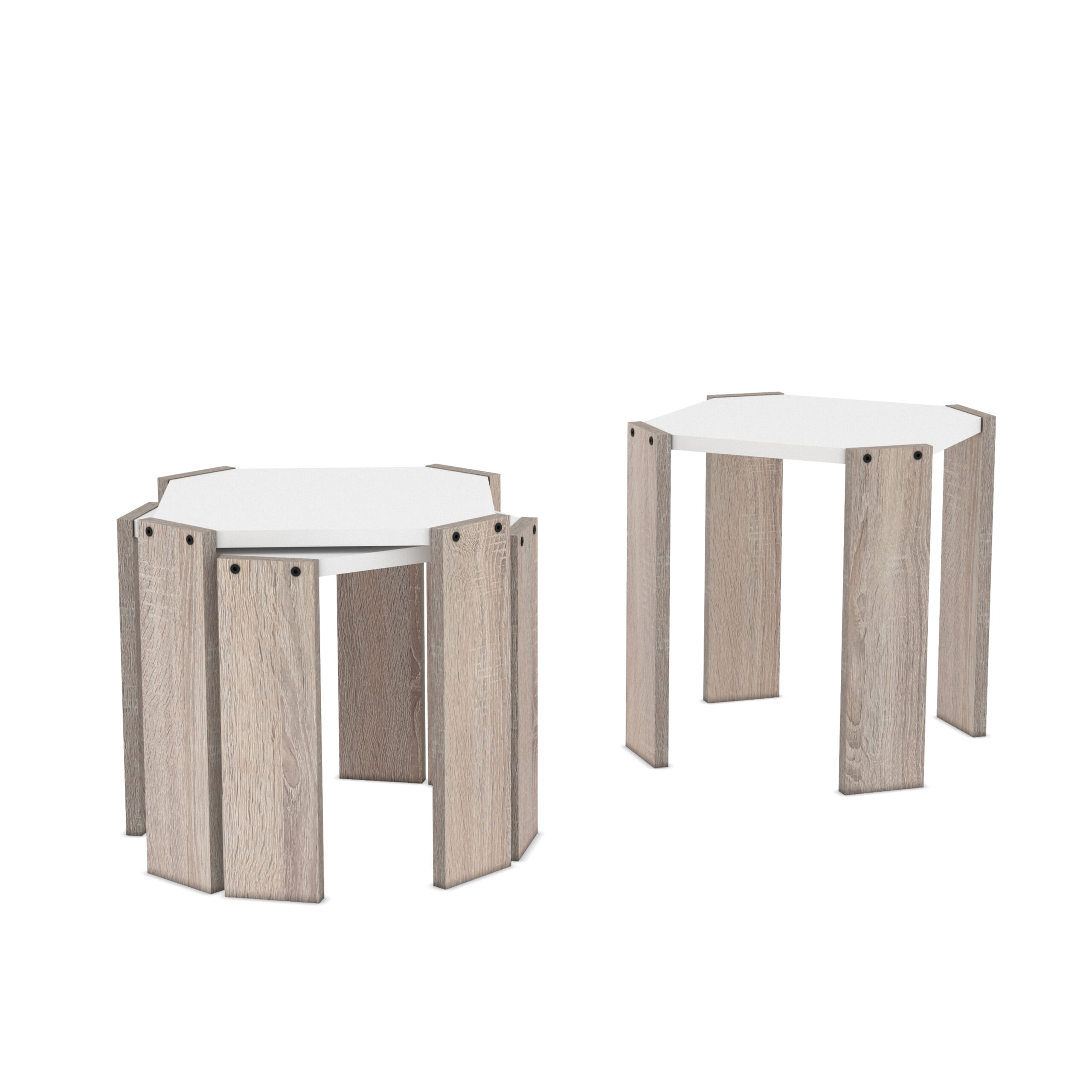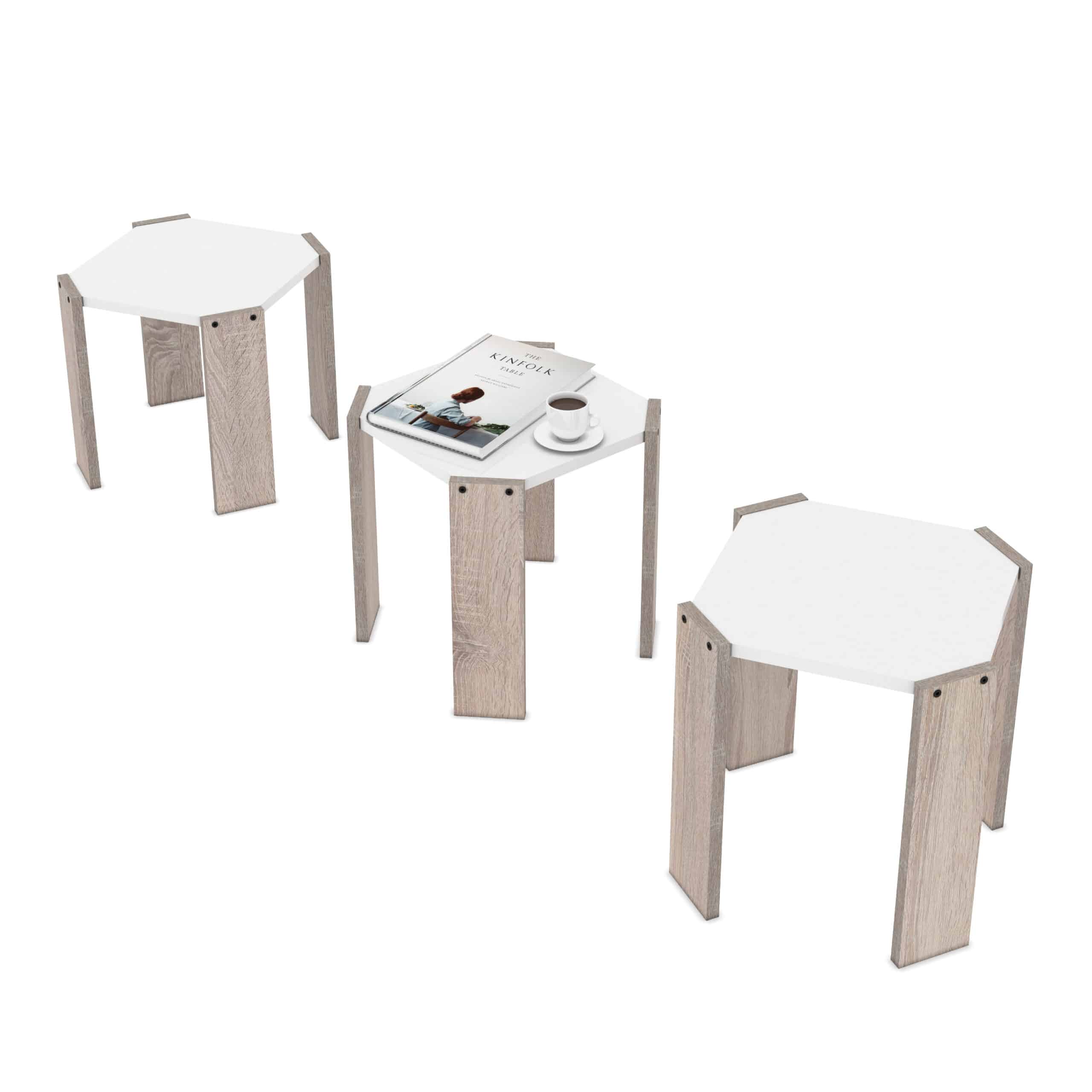 סט 3 שולחנות לסלון מתפצלים עם רגלי עץ אלון בהיר דגם שפי