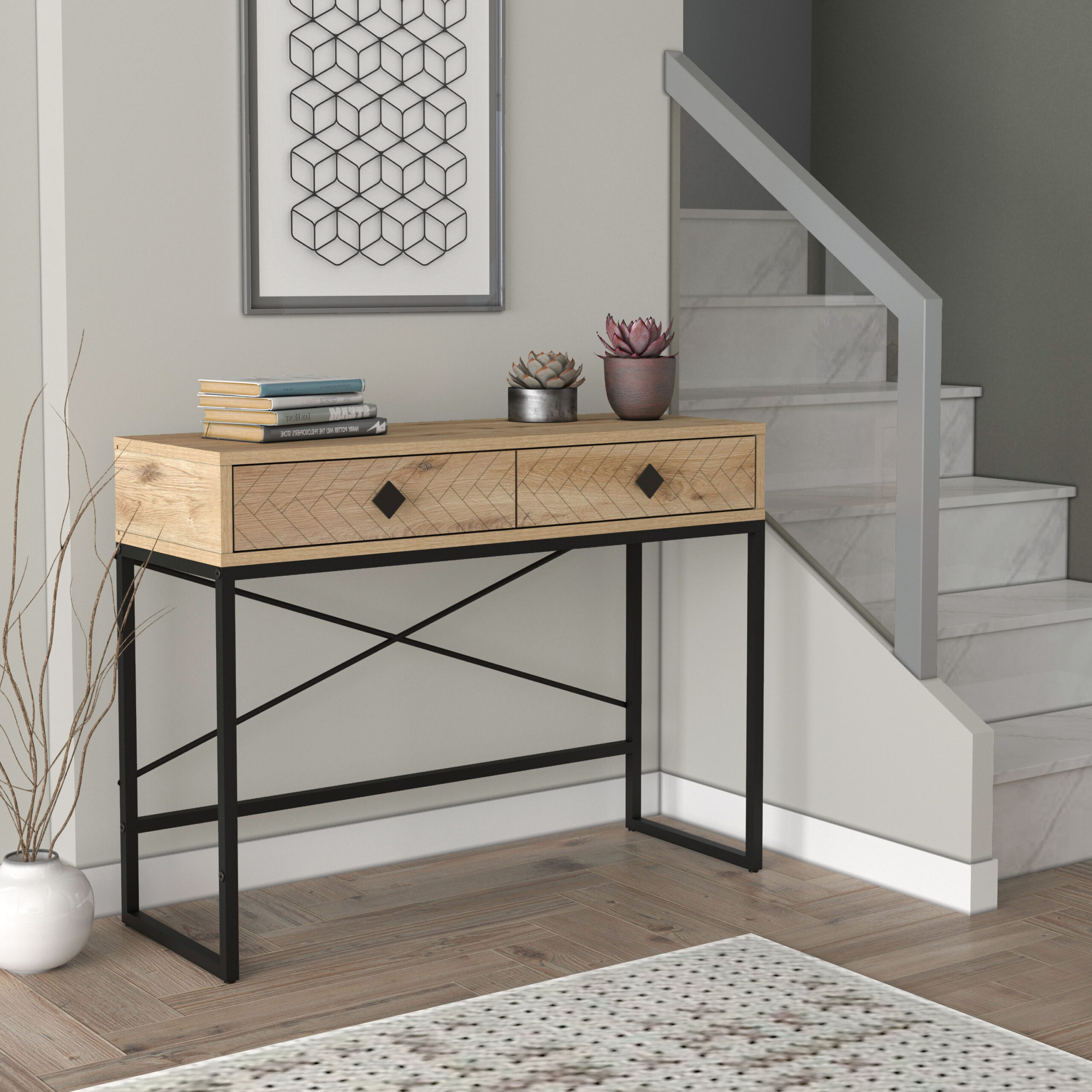 שולחן כניסה צר ומעוצב לפתח הבית ולמסדרון.